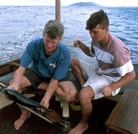 Peter and Troy with a freshly-caught fish. (Copyright Natalie Davey.)